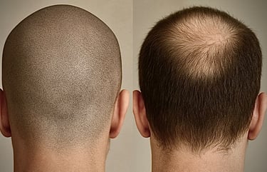 Haartransplantationen hingegen beinhalten die chirurgische Entnahme von Haarfollikeln von einem Teil der Kopfhaut (Spenderbereich) und deren Verpflanzung in die Bereiche mit dünnem oder kahlem Haar.