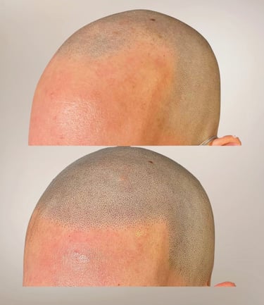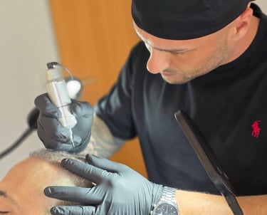 Bevor das eigentliche Verfahren beginnt, wird deine Kopfhaut gereinigt und (falls nötig) rasiert, um sie optimal für das Einbringen der Pigmente vorzubereiten.